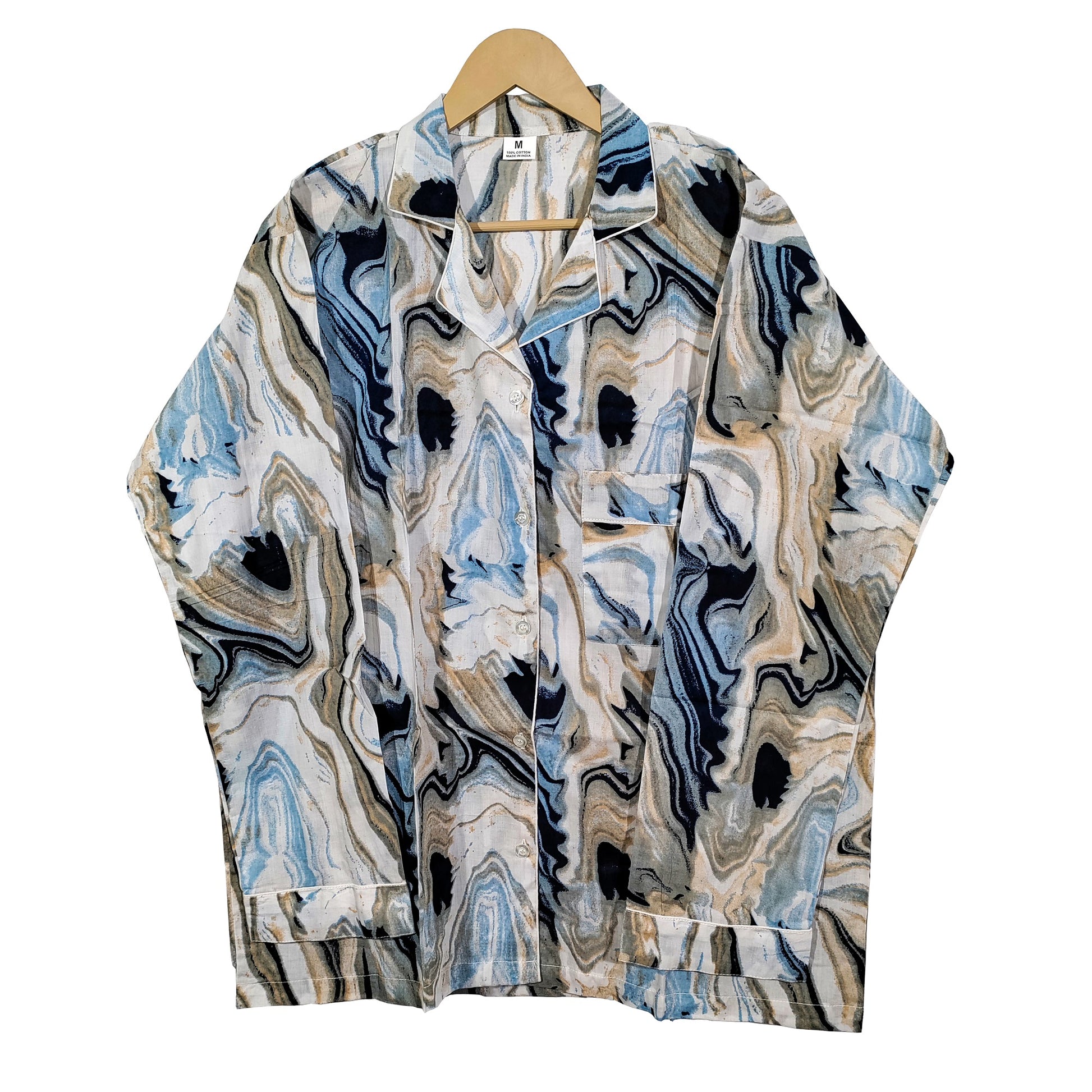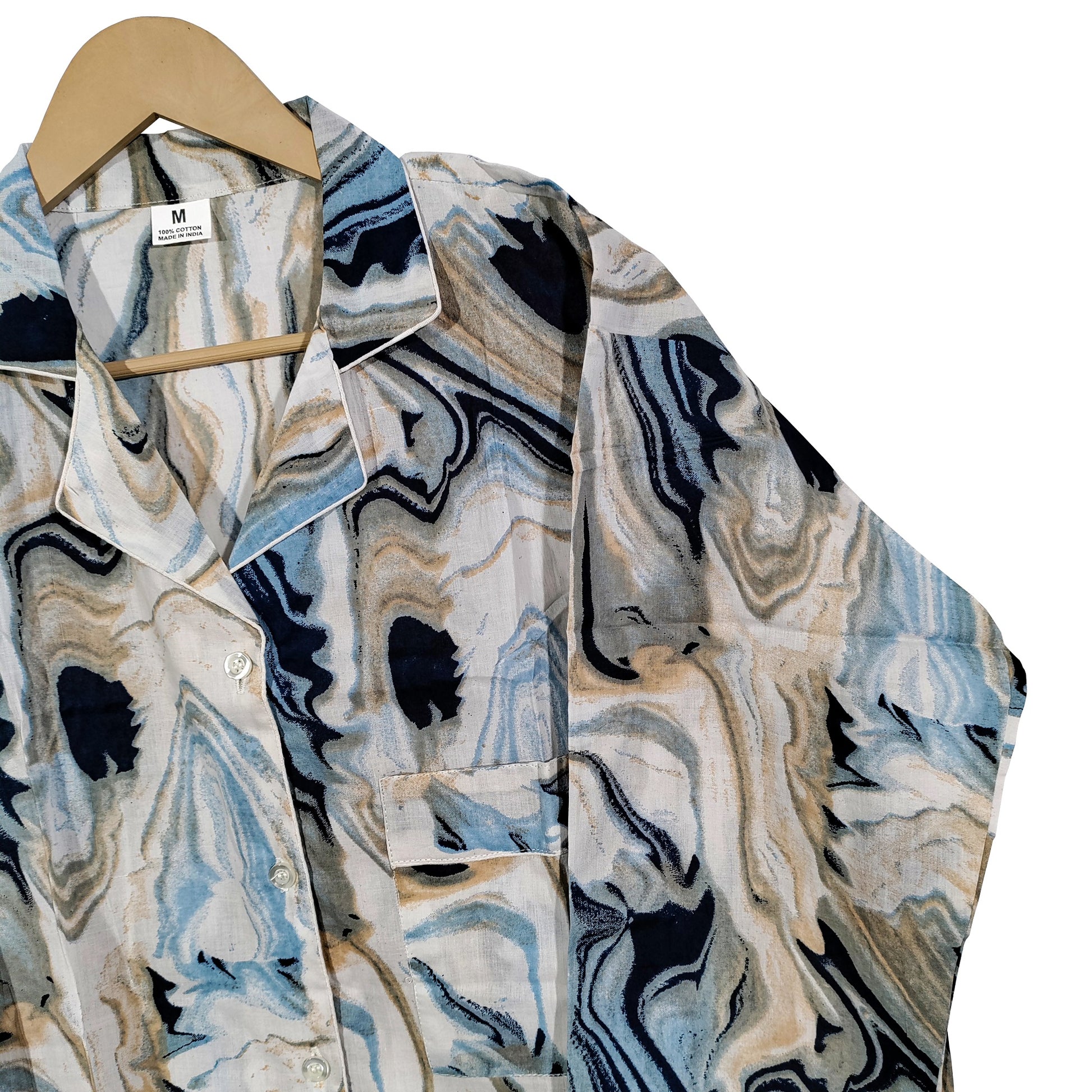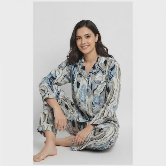 Women Abstract Summer Sleepwear Gypsy Cotton Blue Night wear Top-Pajama set