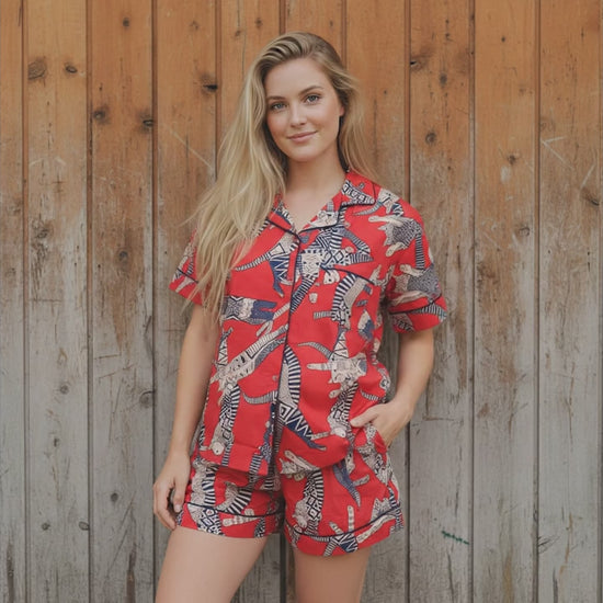 Egyptian Cat Summer Red Sleepwear Cotton Soft Night wear Lightweight Women Short Pajama Set